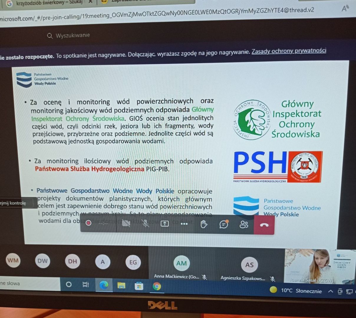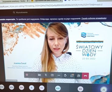 Z okazji obchodów Światowego Dnia Wody 22 marca 2022 uczniowie naszej szkoły uczestniczący w programie Aktywni Błękitni - szkoła przyjazna wodzie wzięli udział w lekcji edukacyjnej zorganizowanej przez Państwowe Gospodarstwo Wodne Wody Polskie. Spotkanie odbyło się na platformie Teams. Zajęcia przybliżyły uczniom znaczenie i sposoby ochrony zasobów wodnych ziemi.