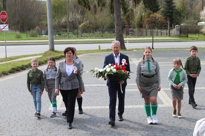 W dniu 29 kwietnia 2022r. Pani dyrektor Beata Sajecka i pan dyrektor Tomasz Pęzioł złożyli wiązankę przy pomniku bohaterów poległych za ojczyznę.