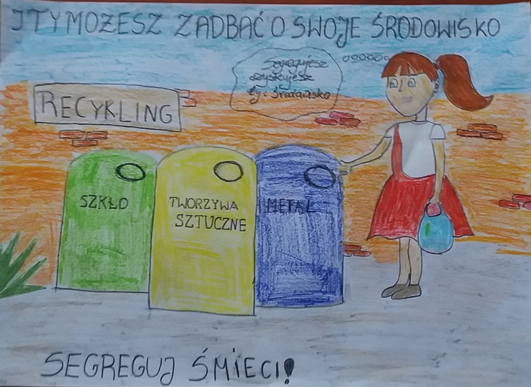 Uczniowie klas I-III wzięli udział w konkursie ekologicznym "Segregujesz - Zyskujesz!" zorganizowanym przez Urząd Marszałkwski Województwa Lubelskiego. Jego celem jest zwiększenie świadomości ekologicznej uczniów, krzewienie dbałości o przyrodę oraz zachęcanie do troski o otaczające nas środowisko. Zadaniem konkursowym było wykonanie pracy plastycznej lub przedmiotu użytkowego z surowców wtórnych.