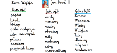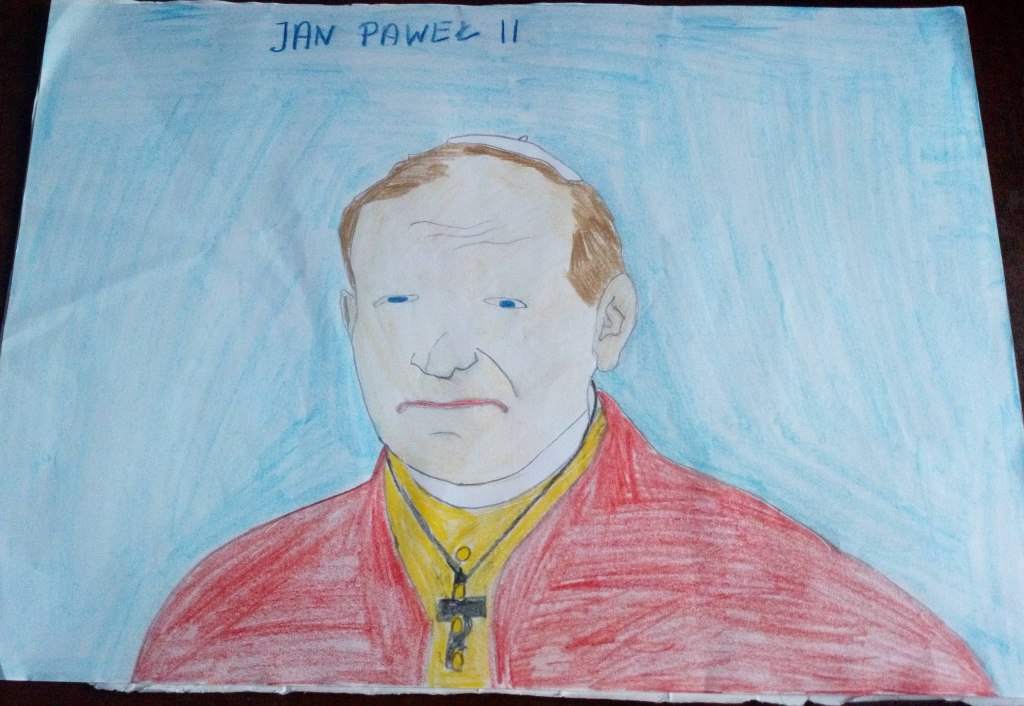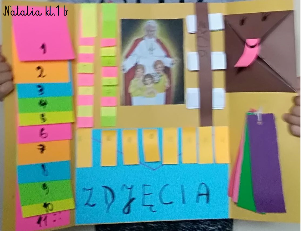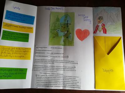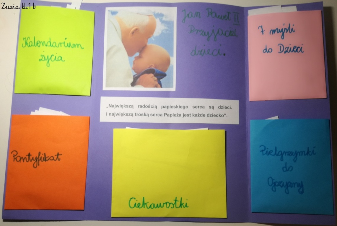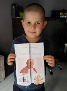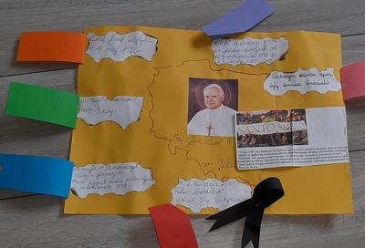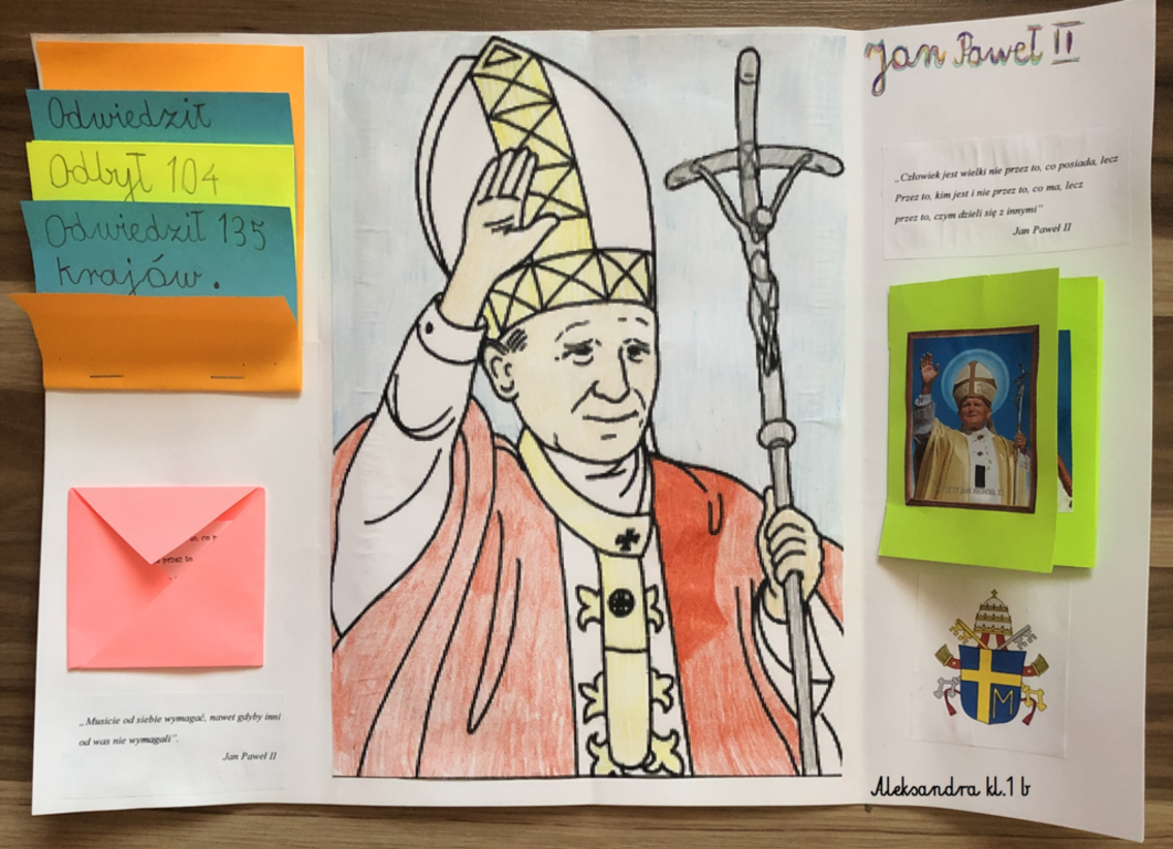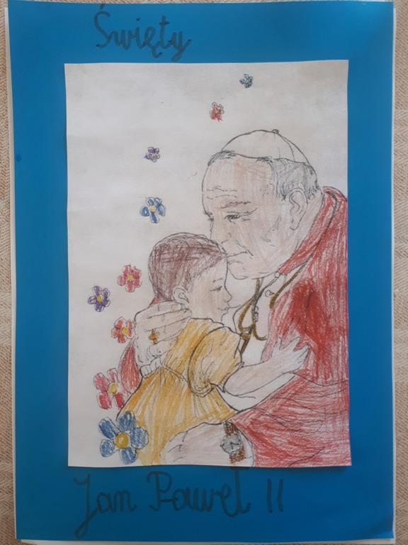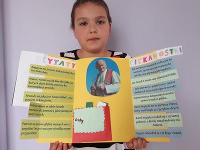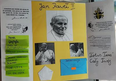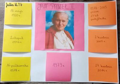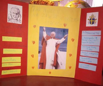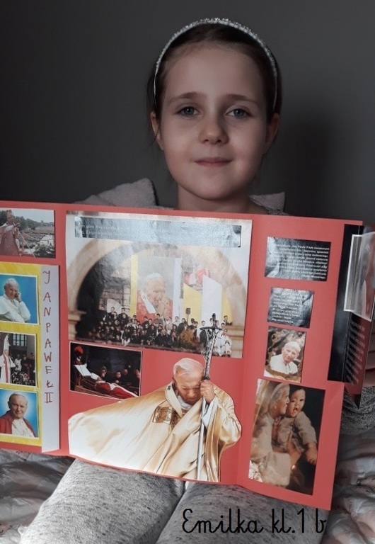 Projekt był realizowany w klasach 1A i 1B. W ramach projektu dzieci obejrzały film ,,Święty Jan Paweł II, życie Świętego Papieża” oraz odbyły wirtualną wycieczkę po domu rodzinnym św. Jana Pawła II, gdzie obecnie znajduje się muzeum. Rozwiązywały zadania interaktywne, łamigłówki, tworzyły "mapę myśli", wyszukiwały informacje w internecie. Po utrwaleniu wiedzy na temat życia patrona wykonały prace plastyczne, lapbooki, czyli miniksiążęczki o Janie Pawle II, układały rymowanki. Uczyły się wierszy i piosenek o papieżu. W realizację projektu zaangażowali się również rodzice, którzy pomagali dzieciom w realizacji zadań w formie zdalnej nauki.