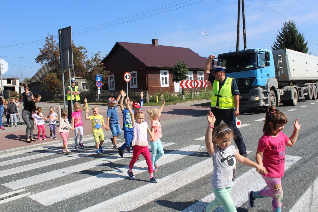 W dniu 10.09.2018 panowie policjanci Ruchu Drogowego z Komendy Powiatowej Policji w Kraśniku odwiedzili przedszkolaków. Po krótkiej prelekcji na temat bezpiecznej drogi do przedszkola dzieci obejrzały samochód policyjny. Następnie wraz z panami policjantami przedszkolaki udały się na przejście dla pieszych, gdzie uczyły się, jak prawidłowo przechodzić przez pasy.