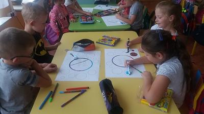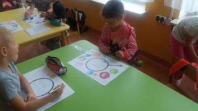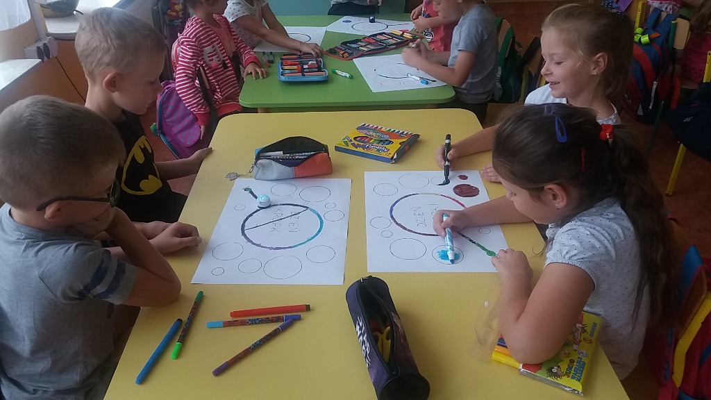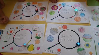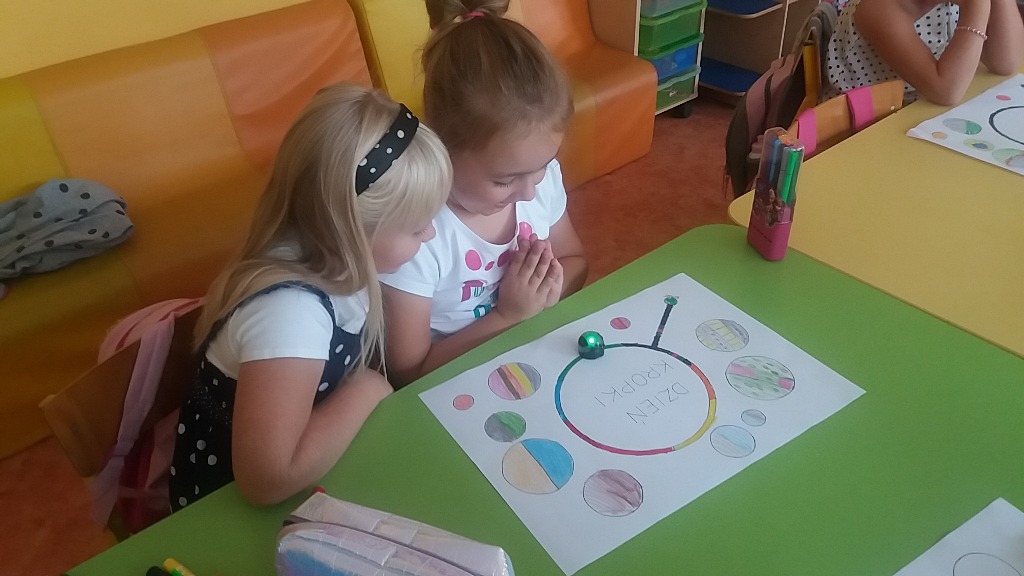 Dzieci z zerówek obejrzały film o Vashti, wykonywały różnorodne zadania, w których motywem przewodnim była kropka. Było programowanie ozobotów, wykonywanie kreatywnych rysunków z kropki, kodowanie na macie i zabawy kubeczkami. Tego dnia kropki były wszędzie, na ubraniach, na rysunkach, a nawet na gimnastyce.