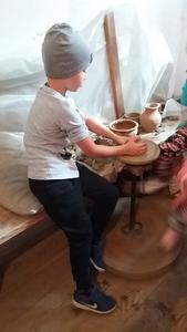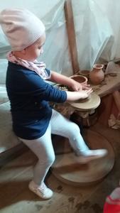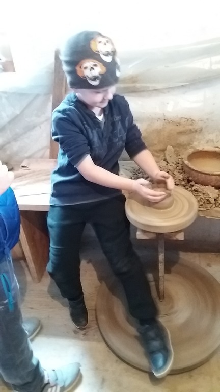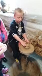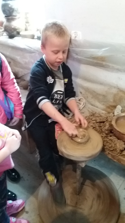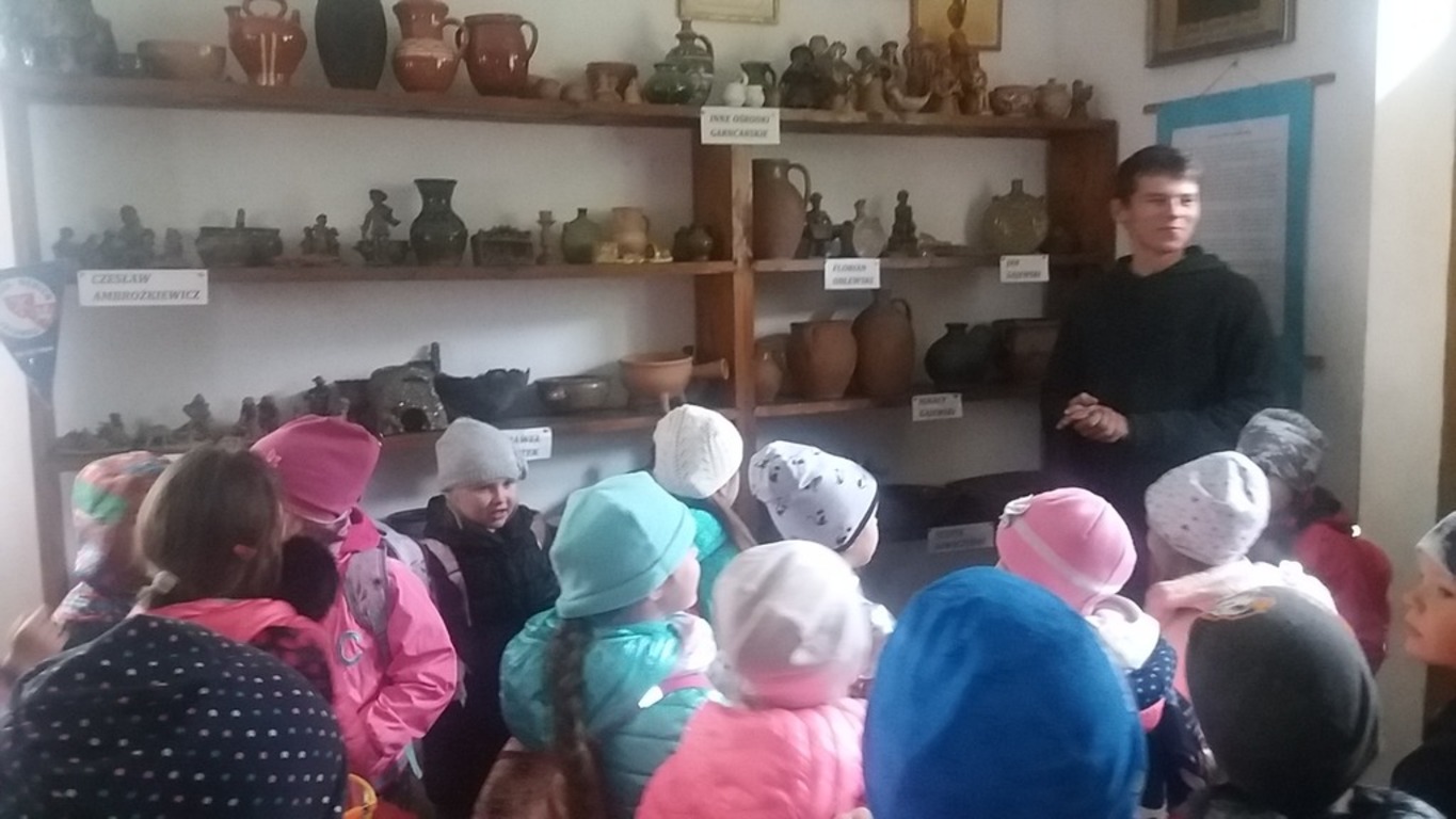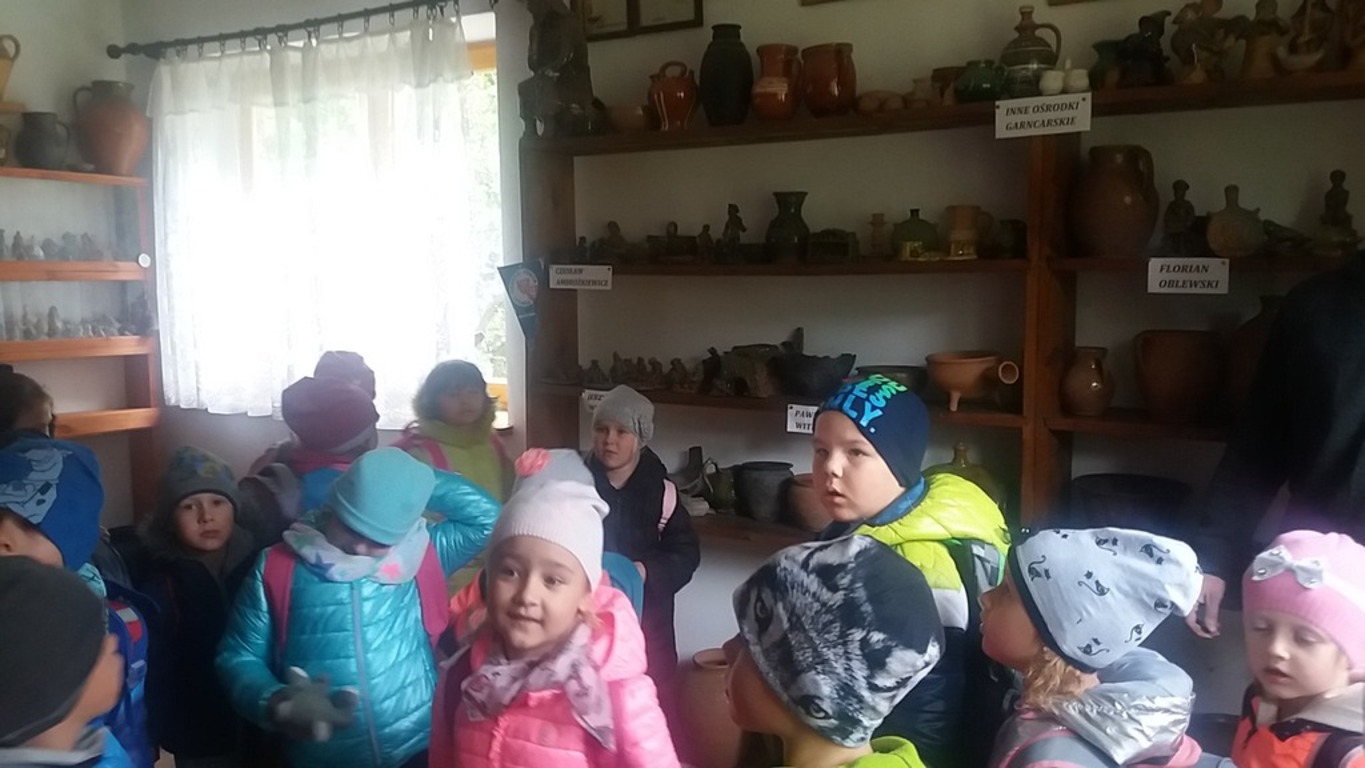 Dzieci z oddziałów przedszkolnych 0A i 0B odwiedziły rodzinę Gajewskich z Bęczyna koło Urzędowa. Jest to rodzina zajmująca się garncarstwem od kilku pokoleń. Przedszkolaki poznały proces produkcji wyrobów z gliny, od wydobycia gliny, aż po wypalanie w piecu w temperaturze 1000 stopni C. Oglądały wystawę naczyń glinianych i poznawały ich przeznaczenie. Każde dziecko mogło samo spróbować pracy na kole garncarskim. Na zakończenie dzieci kupiły na pamiątkę wyroby z gliny. Najbardziej spodobały im się gliniane instrumenty w kształcie kogutków i żółwi.