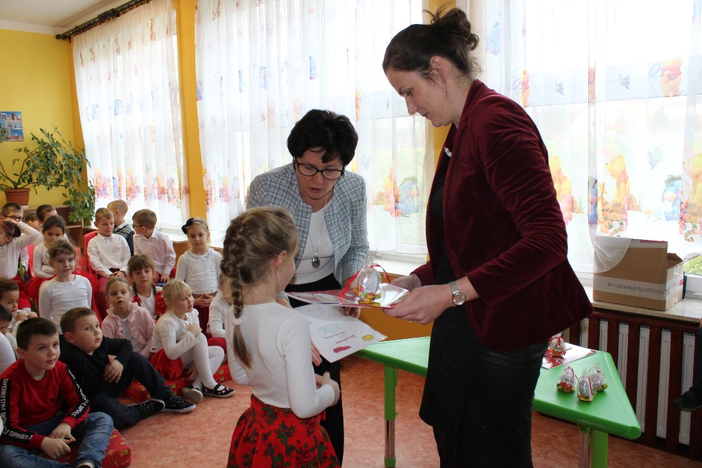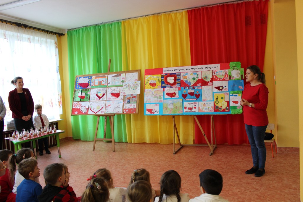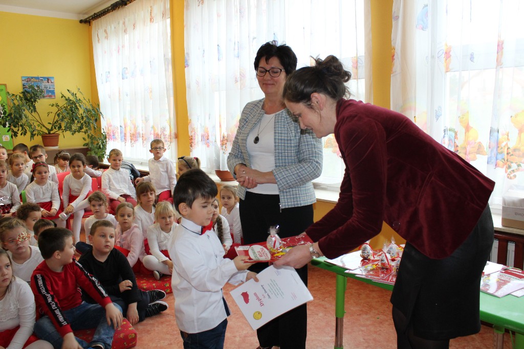 W dniu 11.12.2018r. został rozstrzygnięty konkurs pt. „Moja Mała Ojczyzna”, który realizowany był w ramach projektu edukacyjnego pt."Piękna Nasza Polska Cała". Celem konkursu było kształtowanie poczucia tożsamości narodowej oraz rozwijanie wyobraźni artystycznej i aktywności twórczej dzieci. Konkurs skierowany był do chętnych dzieci w wieku 3-6 lat oraz ich rodziców. Wszystkie prace konkursowe zostały nagrodzone dyplomem i książką. Sponsorem nagród była pani Natalia Waśko, która uczestniczyła również w ich rozdaniu.