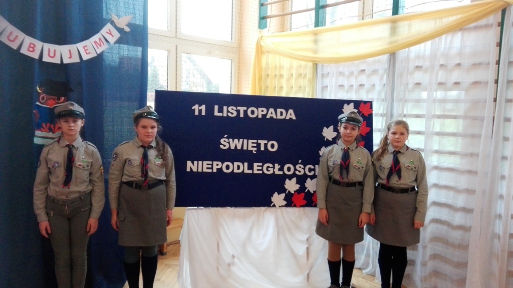 Harcerze z naszej szkoły wspólnie z klasą I „a” przygotowali akademię z okazji Narodowego Święta Niepodległości.