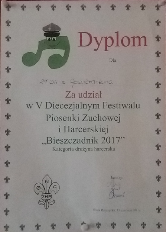17 czerwca 2017 r. wzięliśmy udział w V Festiwalu Piosenki Zuchowo- Harcerskiej „Bieszczadnik 2017” w Woli Rzeczyckiej.