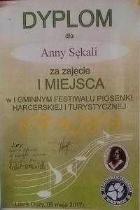 Ania zajęła I miejsce.